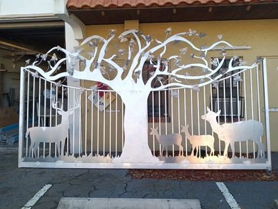 All welded aluminum system to simulate wood, custom Barn Door design.